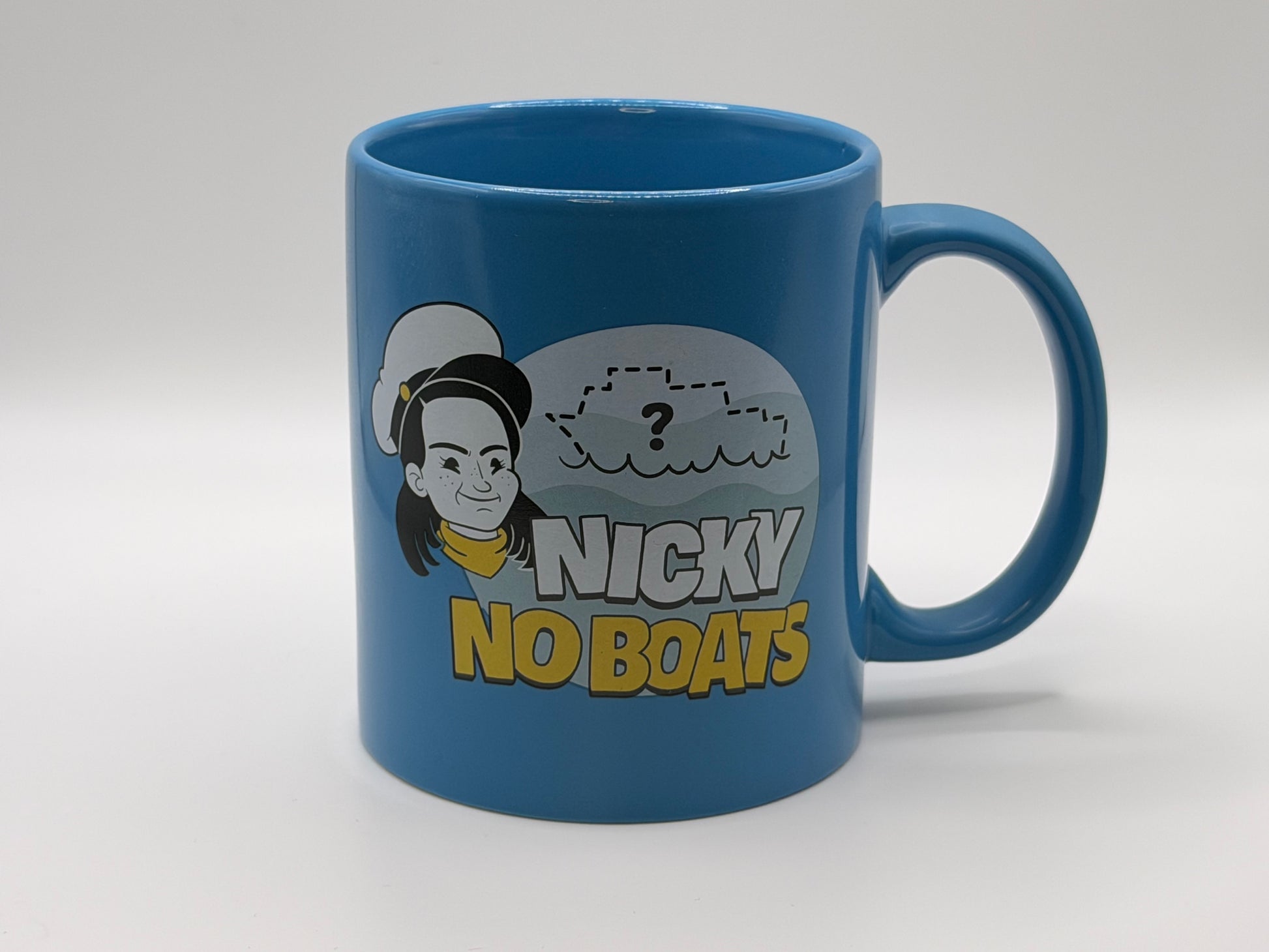 Have her on your poop deck, on the bridge or even in your work cubicle. Nicky No Boats is the mug for every season.